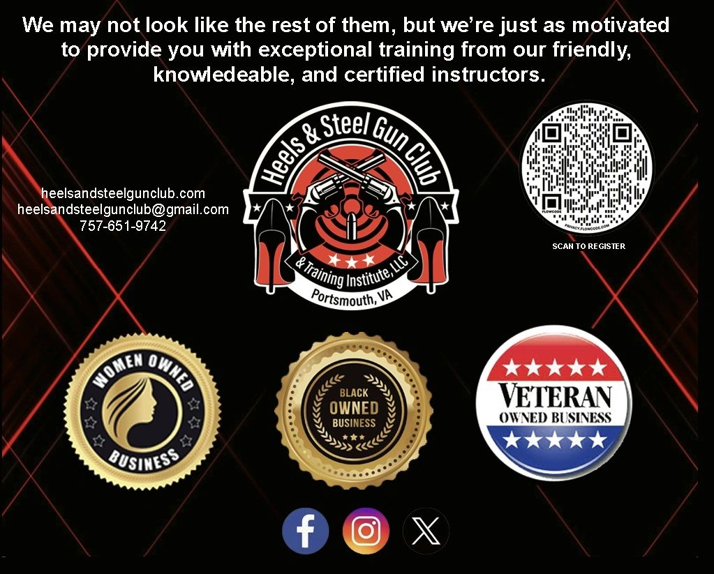 We're partnering with Strong Arms Gun Club, and Black Site Out Door Range. This is an open range shooting event that will focused on Basic and Intermediate handgun shooting. Number one focus will be firearms safety and basic handgun fundamentals to build confidence in handling firearms. The Instructors will provide hands on training to emphasize the importance of firearm safety and the safe handling of firearms. Students will also demonstrate their competency on the range by discharging firearms on the range from distances of 3-25 yards using the handguns and shotguns. Call Strong Arms Gun Club if you're unable to register 757-803-1440.